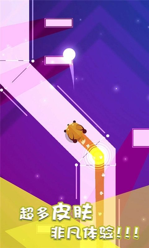 跟着音乐的节拍摇摆,我的电音世界游戏里有超多皮肤和酷炫特效,你得在恰当的时机点击屏幕来改变方向,千万别让原点掉下去哦。