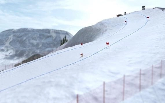 玩家需从雪地的顶端朝着下方快速滑行。