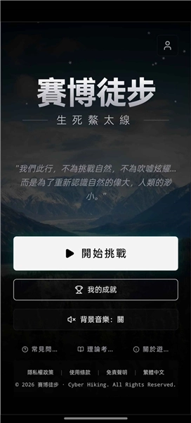 《赛博徒步生死鳌太线》是嬉皮狗工作室推出的文字互动类户外生存模拟游戏。玩家将化身徒步探险者,在资源匮乏的情况下规划装备列表,直面鳌太线的极端环境考验,同时通过对随机事件的抉择左右剧情发展。游戏精准还原了鳌太线的真实地理风貌与徒步路径,融入体温、体能等动态生存参数系统,结合严苛的负重与预算约束,为玩家带来极具真实感的户外生存体验。