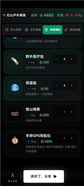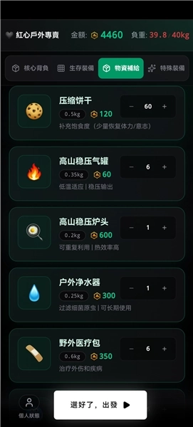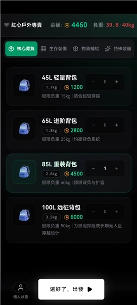在装备商店完成物资采购后,点击出发按钮开启征程