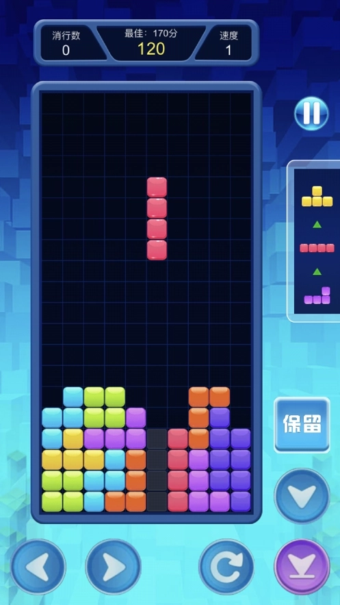 2、这款游戏的核心任务是快速消除方块,一旦消除速度跟不上方块下落的速度,游戏便会失败。