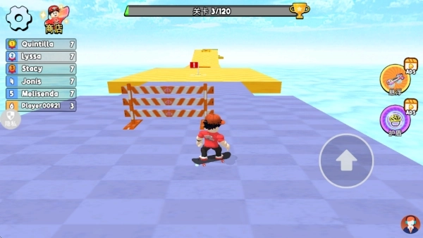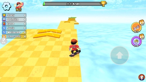 3、在复杂的赛道环境中,跳跃(上滑操作)是极为关键的技巧。这一操作不仅可以帮助你避开各种障碍,还能让你突破常规行进路线的限制,直接抵达高处的平台,或者找到更快捷的近道。