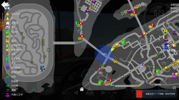 3、点击左上角的全景地图,查看城市赛道的分布情况;随后进入智能车库,可进行ECU调校、悬挂系统优化或碳纤维套件安装等操作,以此打造专属于自己的个性化座驾。