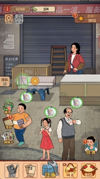 2、剧情驱动的玩法设计:店铺升级过程中会逐步解锁各类趣味支线任务,借助顾客的故事线来深化玩家的情感共鸣,提升游戏代入感。