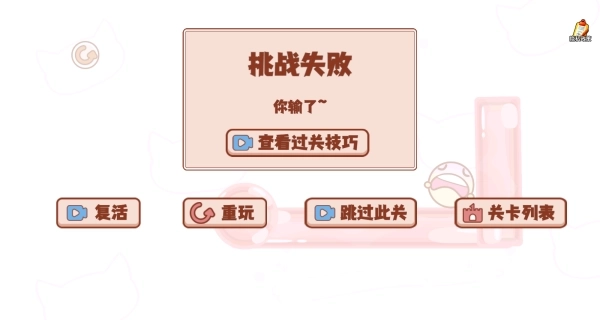 4、若遇到失败提示,可点击“技巧提示”查看通关思路解析;若想跳过解析直接重试,点击“重新挑战”即可快速开始当前关卡。