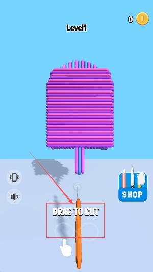 1.游戏启动:打开应用后,点击主界面上的“dragtocut”按钮,即可直接进入第一关。