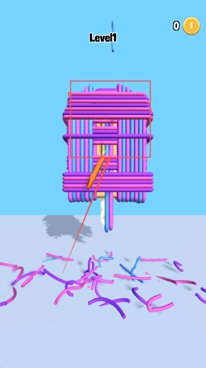 3.缠绕解谜机制:橡皮带以复杂缠绕的形态呈现,需要仔细观察其结构,进而找出最优的切割顺序,以此来提升解谜效率。