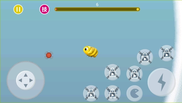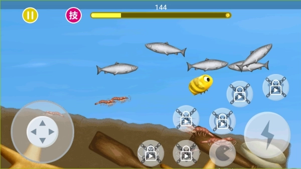 4.如图所示,进入池塘场景后,需持续通过吞噬来进化并扩大自身的体型。在此过程中,请注意右侧的技能栏会随着体型的增长而逐步解锁。