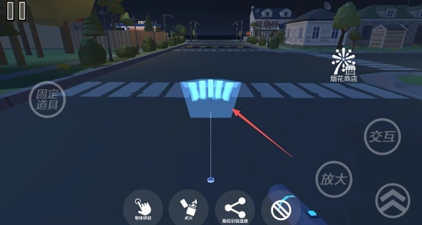 3、把选中的烟花拖拽到地图的空旷区域,还能从多个角度旋转它,以此调整到最佳的展示方位。