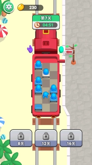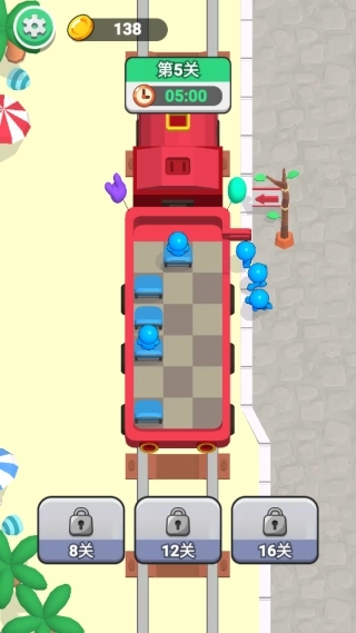 4、部分关卡设有不可移动的灰色固定座椅,玩家需要在有限的空间里规划复杂的路径,以保证所有角色都能精准地就座