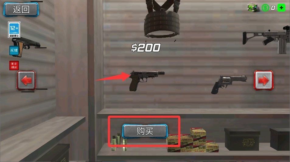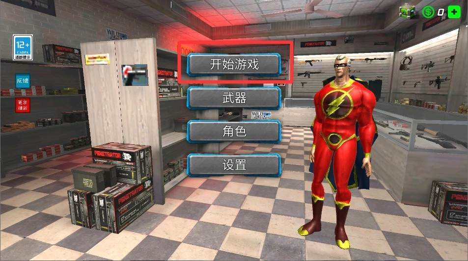 游戏启动后点击中央"开始战斗"按钮,进入备战界面后优先消耗金币购买高威力枪械提升作战能力。