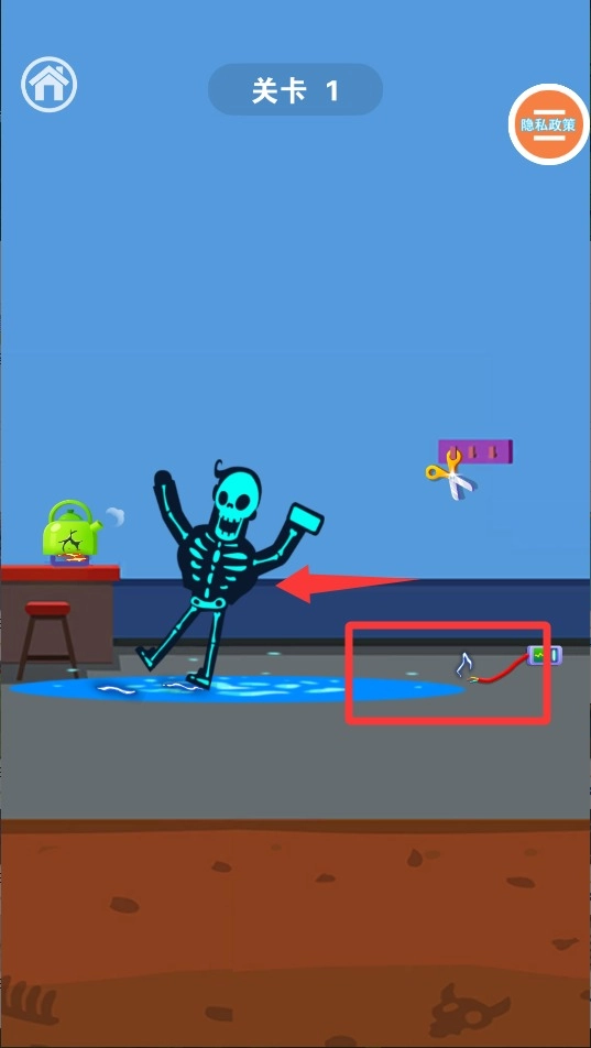 4、当目标人物踩到带电的水渍时,就会触发触电事故,只要成功制造出意外事件,就能顺利通关并获取新的道具奖励。