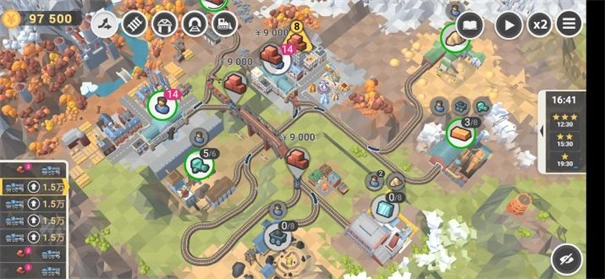 1、有句俗话说得好:要致富,先修路!想要发展你的小山谷,第一步当然就是设计铁道路线啦,你需要合理的规划出铁路路线,各个运输路线当中会有交叉和重合,你也可以通过升级火车头,或者用隧道和大桥来抄近路,提高运输效率。你的目的是要用最低的成本、最少的时间来完成运输任务,至于如何规划才能最高效的完成任务,这就看各位的发挥了