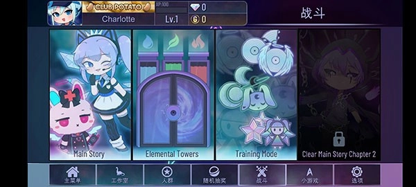 3、点击底部的“战斗”按钮进入游戏关卡,然后选择主线任务“Main Story”。