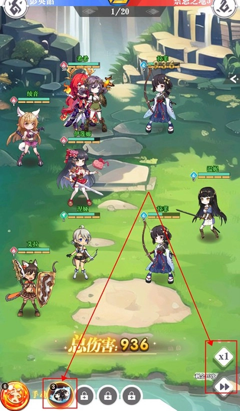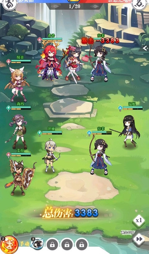 玩家在战斗时可点击左下角的技能图标来释放英雄合击技。要是觉得战斗节奏偏慢,还能点击右下角的x1/2/3按钮提升战斗倍速,或者通过右下角的三角形按钮直接跳过战斗,不过跳过功能是有次数限制的哦!
