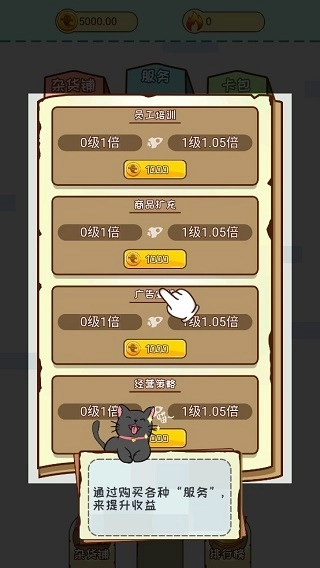 4、此外,在“商城”中除了商品外还能购买服务,只需点击进入“服务”界面,选购所需的服务项目,就能助力杂货铺提高收益。