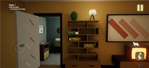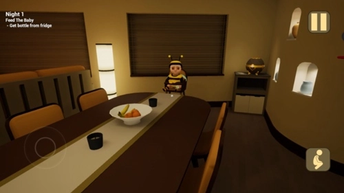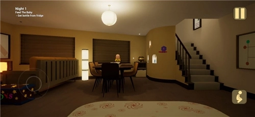 2、音效营造出惊悚氛围,画面透着诡异感,屋内处处让人毛骨悚然,玩家需与黄衣宝宝展开一场斗智斗勇的较量。