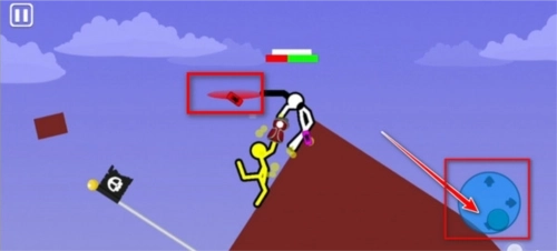 4、战胜对手的方式是操控方向键(支持长按与短按操作),让武器命中对方,或是用腿部贴近对手进行近身攻击(攻击头部造成的伤害更大),直到对手的血条耗尽,或者把对手推入海中使其直接淘汰出局。