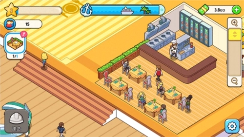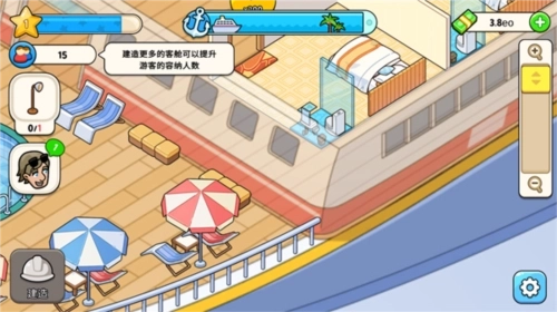 1、玩家在游戏中需要建造各种不同的设施,乘客在航行过程中可以在游轮上消费,玩家即可获得收入。