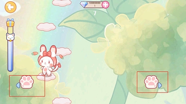 4、就能和猫咪一同玩游戏啦,点击左右两侧的猫爪,帮助猫咪爬到最高层;