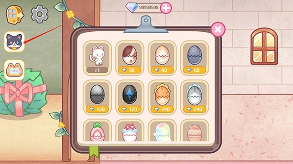 8、要是想拥有更多可爱的猫咪,点击旁边的猫咪按钮,在里面挑选并购买自己喜欢的蛋就可以啦。