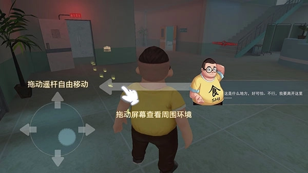3、初次进入场景时,伴随着旁白的介绍,你会置身于一个陌生的环境中。这里会出现操作指引,比如通过拖动摇杆来自由移动,或者拖动屏幕以观察周围的环境。