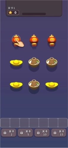 2、玩家能够点击关卡里的物品,将其放置到游戏下方的方块之中。