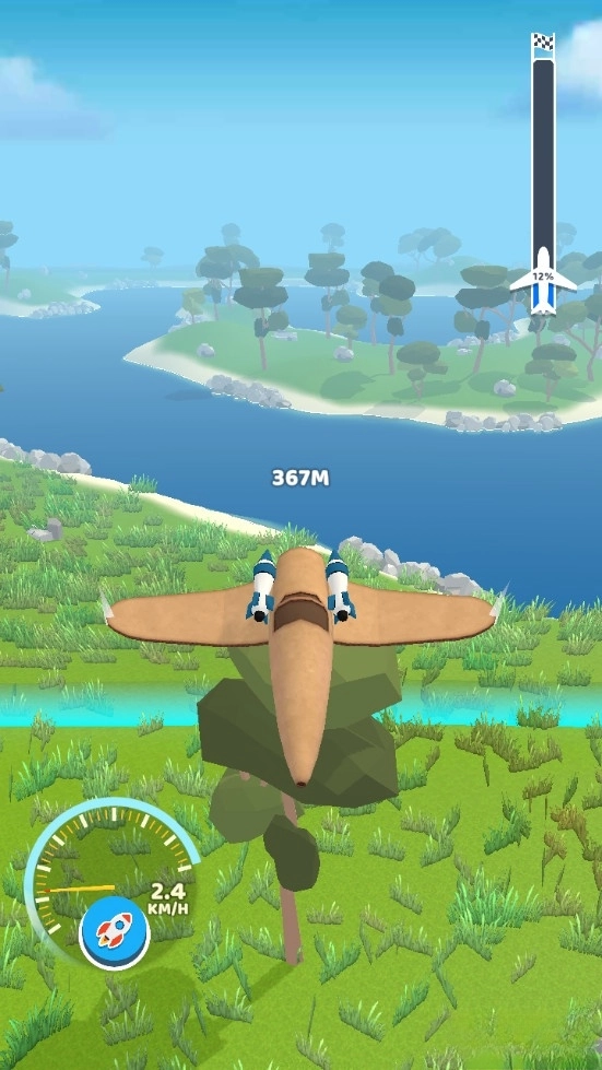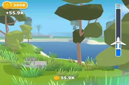 飞机飞的越远,奖励金币就越多,场景上有隐藏宝箱,可以向左右飞行探索。