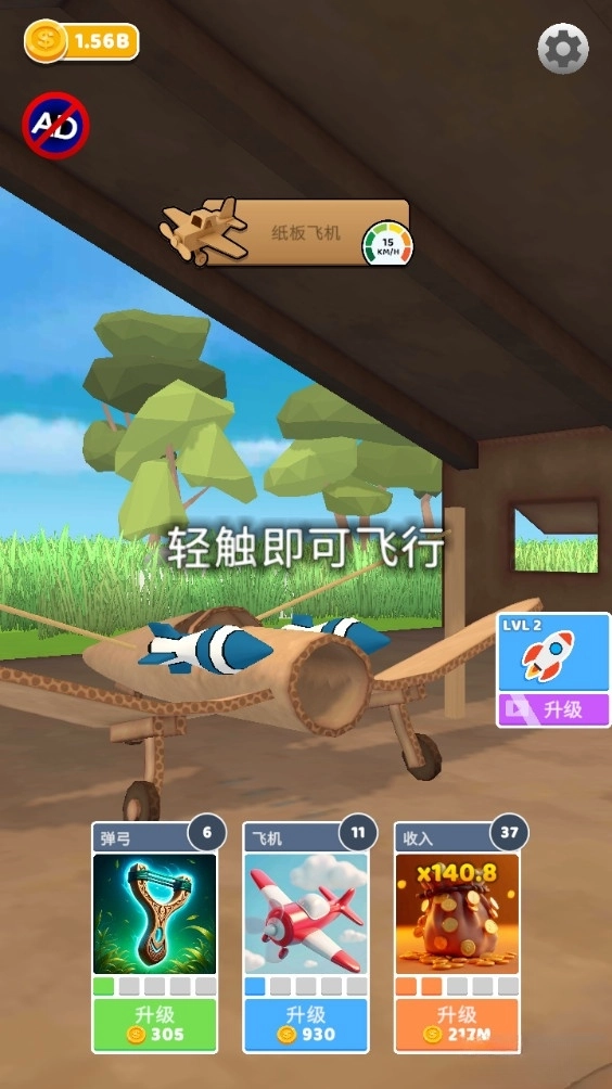 点击下方升级,可以提升飞机飞行距离。