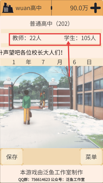 4、完成招生工作后,密切留意【学生 - 105人】数量的变动情况,持续运营学校,通过提升学校声望与教学质量来实现发展壮大。