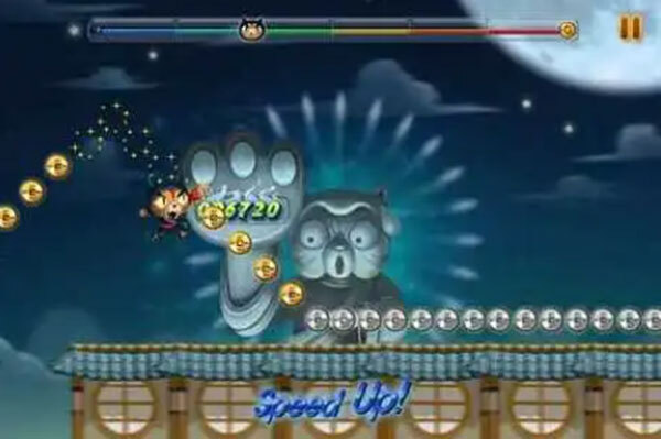 3、只需单次点击屏幕,忍者猫就能完成一次基础跳跃。
