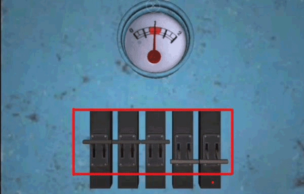 6、最后那扇无法打开的门便是正门,只要按照下图的提示拨动那个类似油箱的箱子,就能打开正门顺利通关了。