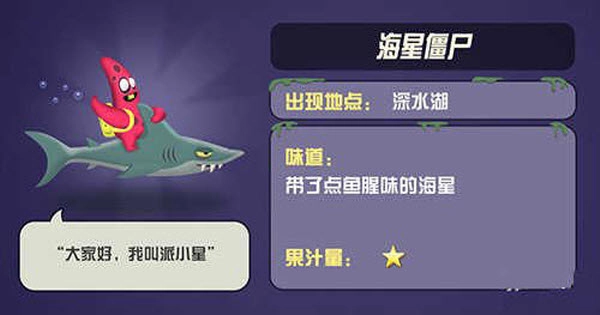 4、海星僵尸:果汁量1星。